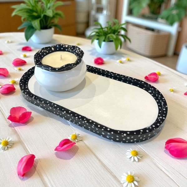 VARIANTE 2: realizada en cemento blanco con borde en negro y puntos en plateados.