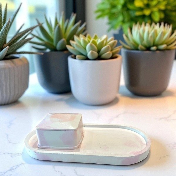 VARIANTE 1: realizada en cemento blanco, rosa y coral bajo el estilo marmolado.